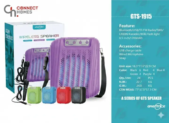 Take your music wherever you go with the GREATNICE GTS-1915 Portable Wireless Speaker. This powerful speaker is designed for music lovers who demand loud sound and a stylish look. Whether you are hosting a home party, going on a picnic, or practicing karaoke, this speaker is your perfect companion.