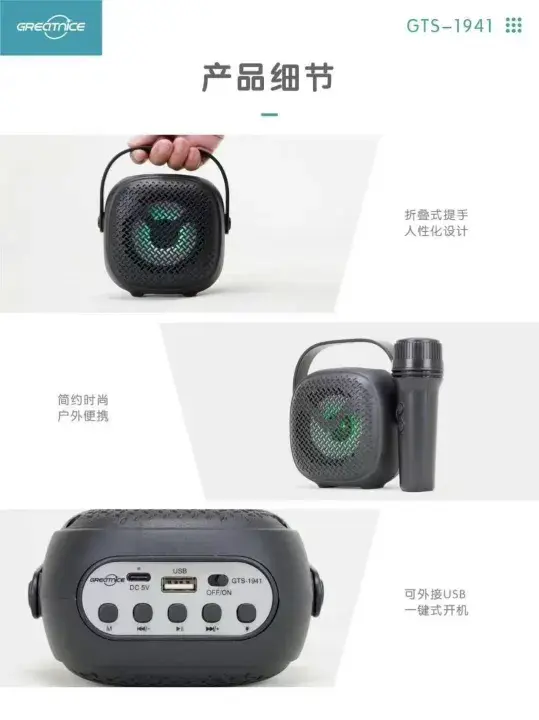 GreatNice GTS-1941 sirf aik aam speaker nahi balkay entertainment ka aik mukammal package hai. Iska sab se bara feature iska Voice Changer Microphone hai jo bacho aur baron dono ke liye karaoke ko mazeedar bana deta hai. Aap apni awaz ko aik button daba kar funny characters (jaise bacha ya lady) mein badal sakte hain.