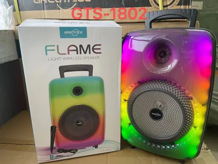GTS-1802, Flame Speaker GREATNICE GTS-1802 FLAME Portable Bluetooth Speaker - 8 Inch Large Woofer - RGB Flame Light Effect - Supports Karaoke Mic, FM Radio, TWS, USB & TF Card - Rechargeable Outdoor Party Speaker