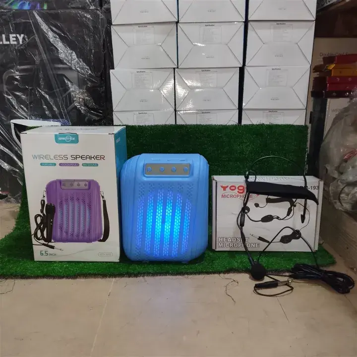 GTS-1915 6.5 Inch Wireless Bluetooth Speaker with RGB Lights + Yoga DM-193 Headset Microphone – Ramzan Combo Deal | GTS-1915 Bluetooth Speaker 6.5” + Headset Mic Combo – RGB Lights | 1200mAh Battery