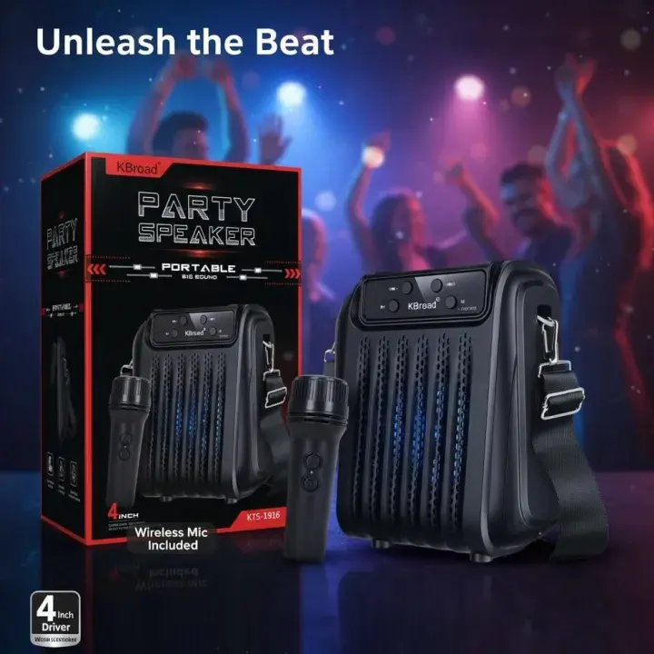 Bring the party to life with the KBroad KTS-1916! This compact yet powerful portable speaker is the ultimate choice for music lovers and karaoke fans. Whether you are hosting a birthday party, going on a picnic, or enjoying a gathering at home, the KTS-1916 ensures high-quality sound and entertainment.