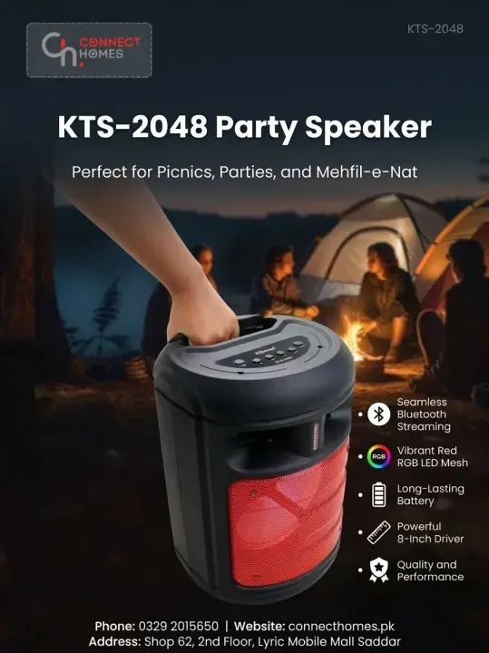 The KTS-2048 8 Inch Bluetooth Karaoke Party Speaker is designed for powerful sound and entertainment. It features a high-performance 8 inch subwoofer that delivers deep bass and loud audio, making it perfect for home parties, outdoor gatherings and karaoke sessions.