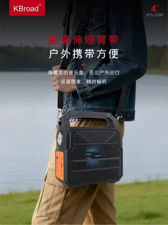 KTS-2299 Ultra-Portable Wireless Bluetooth Speaker - Colorful RGB LED Light - High-Bass Clear Sound - 1200mAh Rechargeable Battery - Durable Carrying Strap - Supports FM Radio, USB & TF Card