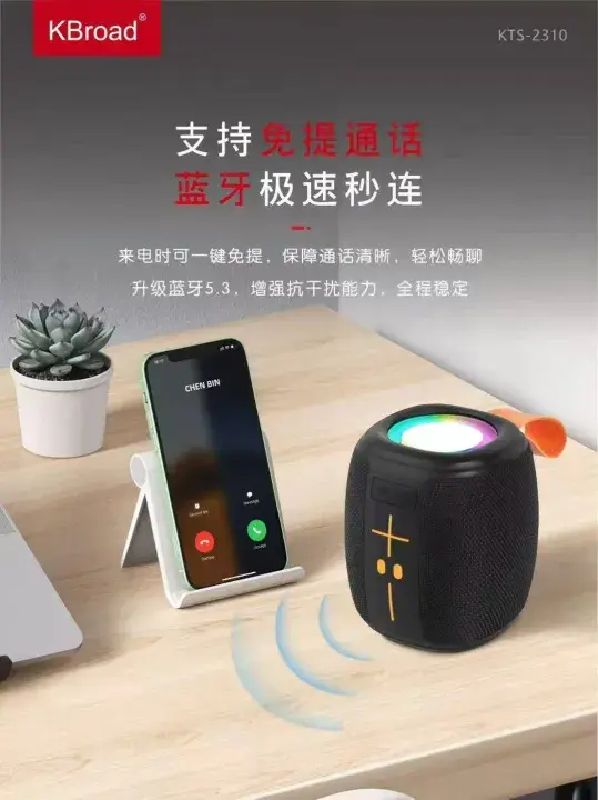 The KTS-2310 is the perfect blend of modern aesthetics and high-performance audio. Designed for those who value both style and sound, this speaker features a premium fabric texture that looks great on any desk or outdoor table.