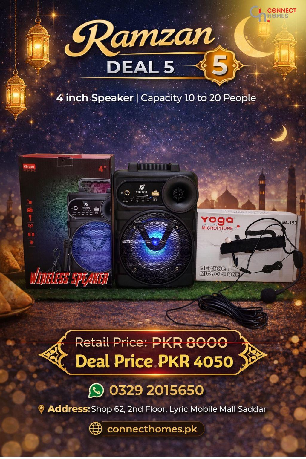 Ramzan Deal #5: KTS-1512 4" Wireless Rechargeable Speaker + Yoga DM-193 Professional Headset Mic