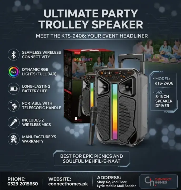 Enjoy rich, powerful sound and versatile connectivity with the KTS‑2406 8″ Wireless Speaker with Mic. Designed for convenient portability and strong performance, this speaker supports Bluetooth music streaming, wired microphone input, and multiple playback options. Whether you’re hosting a karaoke night, partying with friends, or enhancing your home audio experience, this speaker delivers immersive audio with deep bass and clear vocals.