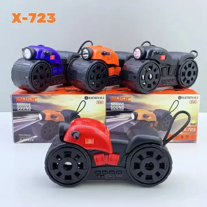 The X-723 Super Bass Portable Bluetooth Speaker is designed for powerful sound in a compact body. It features a built-in active stereo woofer that delivers deep bass and clear audio.