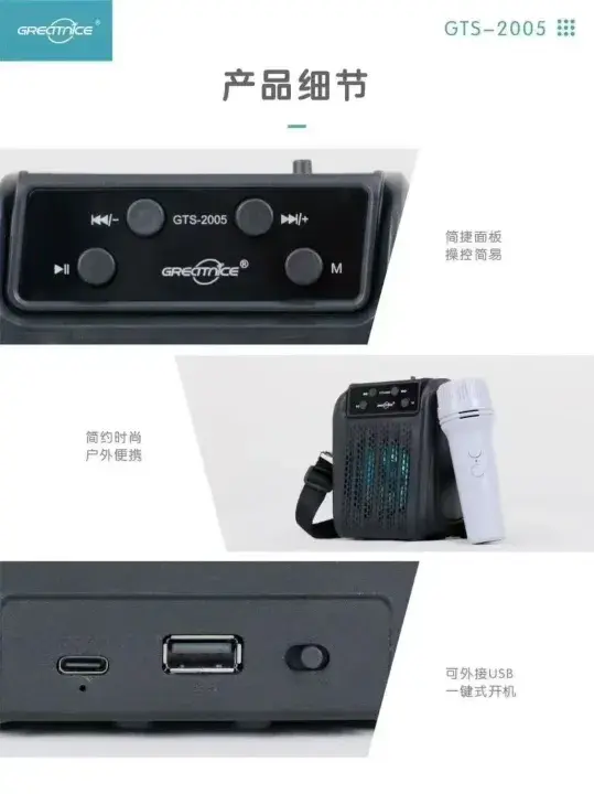 Whether you are hosting a small karaoke party with the included Microphone or listening to the news on the FM Radio, the GTS-2005 handles it all. Its modern design includes a sturdy carrying strap, making it easy to hang or carry during hikes, picnics, or beach trips. With multiple input options like USB and TF card support, you can enjoy your favorite playlists even without a Bluetooth connection.