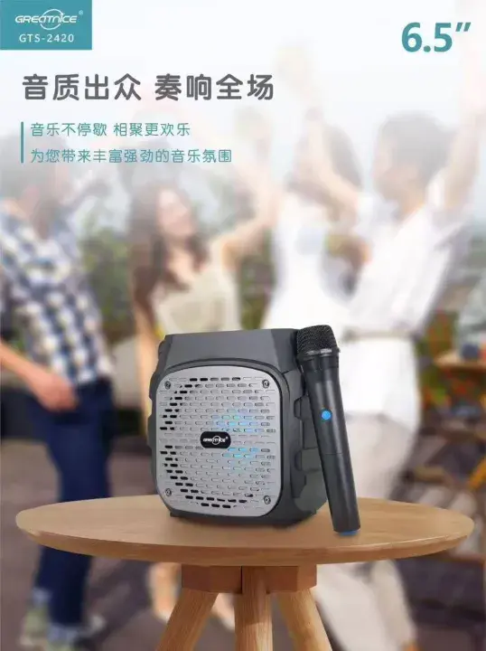 GTS-2420 6.5” Portable Bluetooth Speaker powerful sound ke sath wireless microphone included. FM radio, USB & TF card support aur 1200mAh rechargeable battery ke sath best choice for indoor & outdoor use.