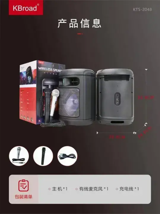 The KTS-2048 8 Inch Bluetooth Karaoke Party Speaker is designed for powerful sound and entertainment. It features a high-performance 8 inch subwoofer that delivers deep bass and loud audio, making it perfect for home parties, outdoor gatherings and karaoke sessions.