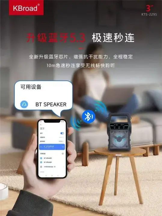 The KTS-2295 is a game-changer for music lovers who spend time outdoors. This 3-inch mini speaker is not just wireless—it is eco-friendly. With a Solar Panel integrated directly into the design, you can keep your battery topped up using natural sunlight, making it ideal for picnics, hiking, or areas with limited power access.