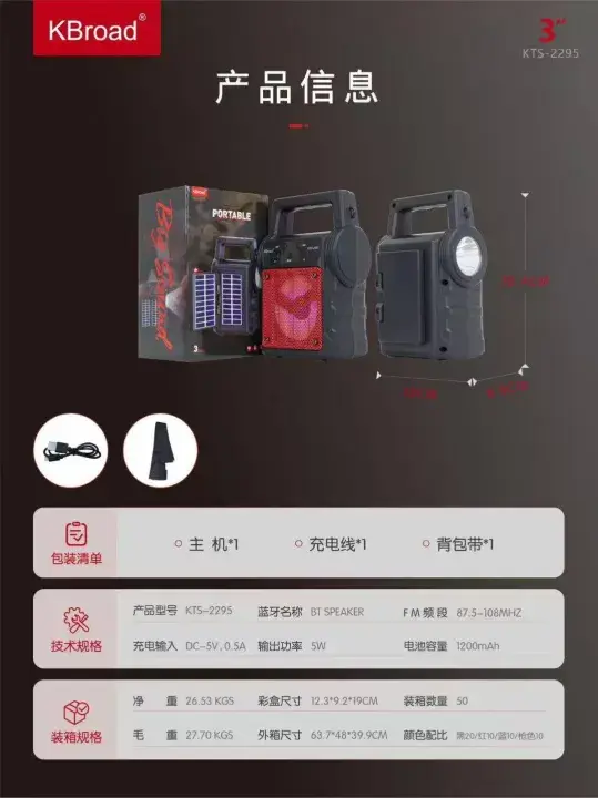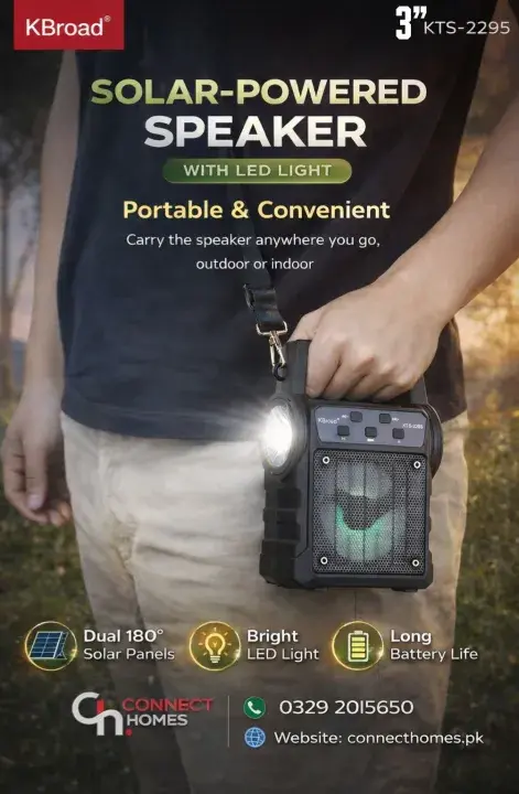 KTS-2295, Solar Bluetooth Speaker, Mini Portable Speaker, Rechargeable Solar Speaker, KTS Mini Speaker, Solar FM Radio, Outdoor Portable Speaker, Small Wireless Speaker Pakistan.