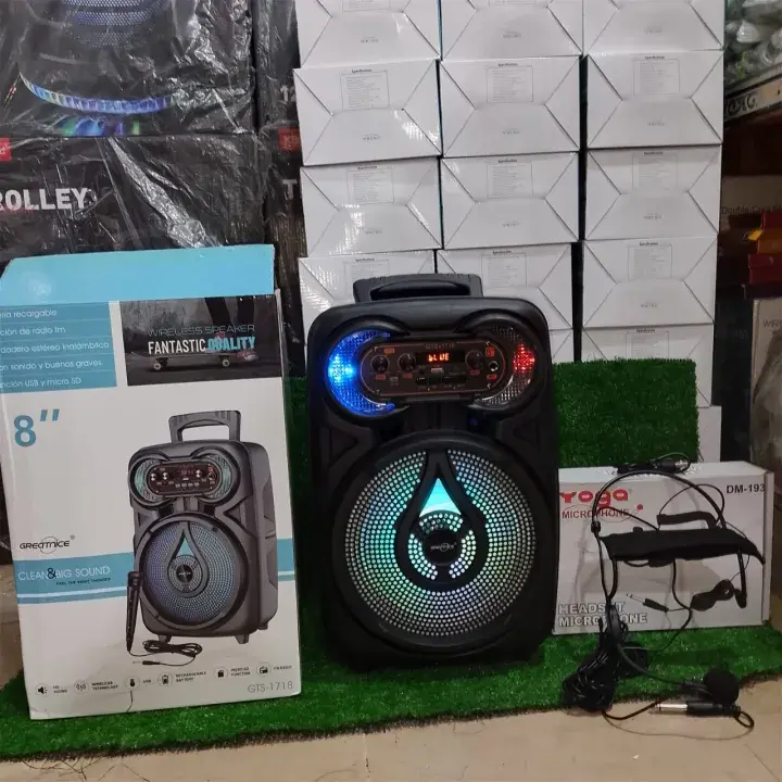 Ramzan Deal #7: GTS-1718 8-Inch High-Power Wireless Speaker + Yoga DM-193 Professional Headset Mic
